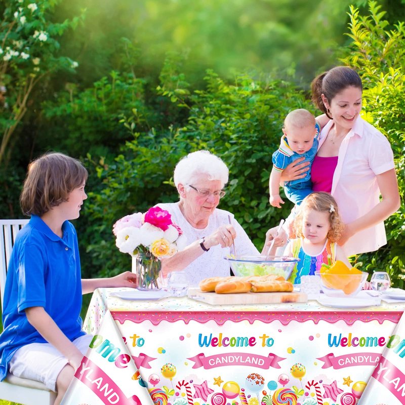 - Use with confidence: our candyland tablecloths are made of plastic, which is sturdy and lightweight, waterproof and odorless, disposable feature also saves your cleaning time after parties or activities