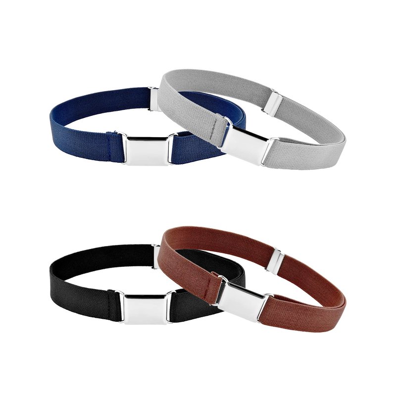 Tatuo 4 Pieces Kids Buckle Belt Kid Adjustable Elastic Belt Boy Stretch Belt for Children Favor (black, gray, brown, navy blue)