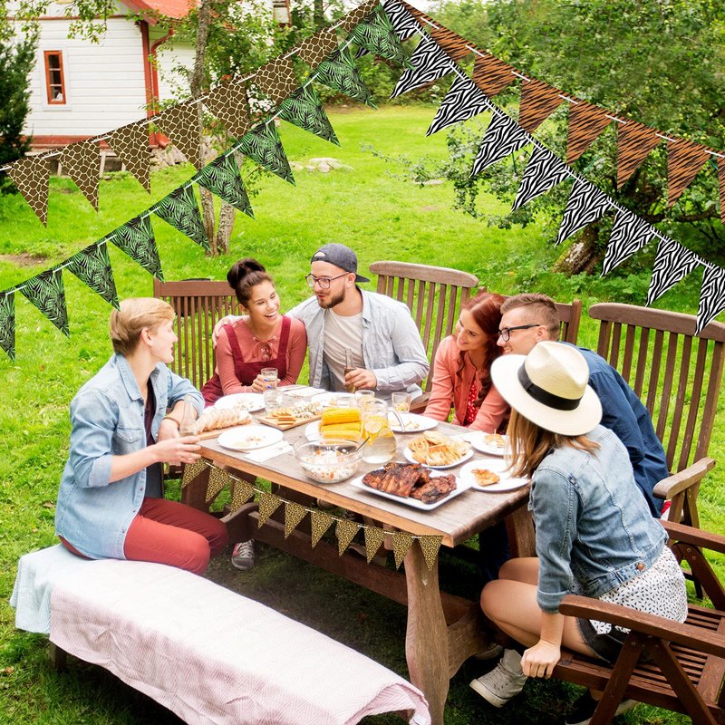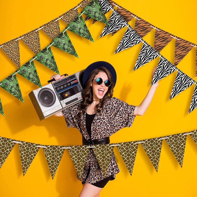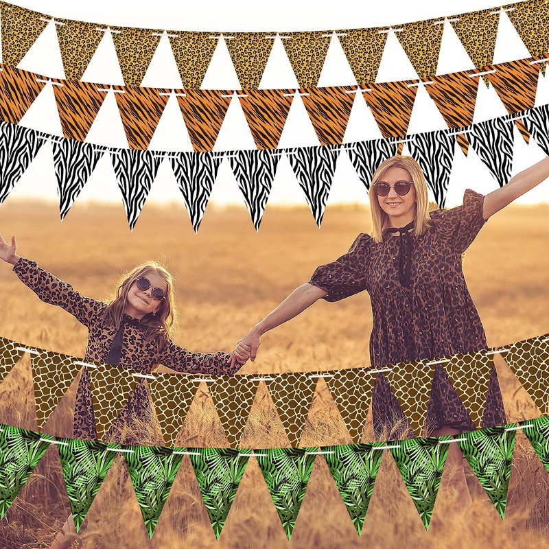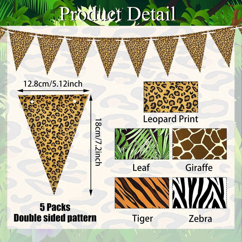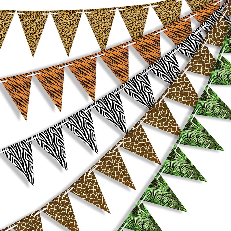 - Material and size: these animal print banners are made of durable paper material, which can be applied for many times; Each triangular flag is about 5 x 7.1 inch/ 12.8 x 18 cm, enough length for you to decorate your party