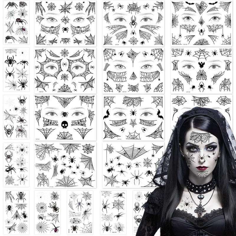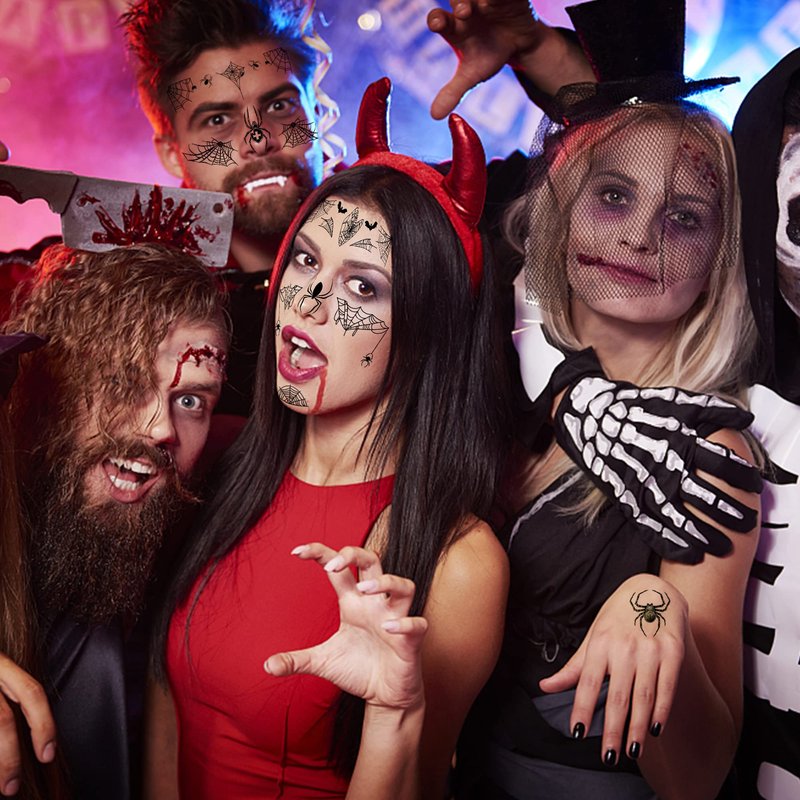 - 【Multiple use】 These Halloween spider face tattoos are suitable for club nights, Halloween, gatherings, daily wearing, going shopping, beach party, pool party, concerts, cosplay party, birthdays, spider-themed party and so on, which will help your draw other's attention easily, can also be applied as a photo prop, helping you take many cool photos.