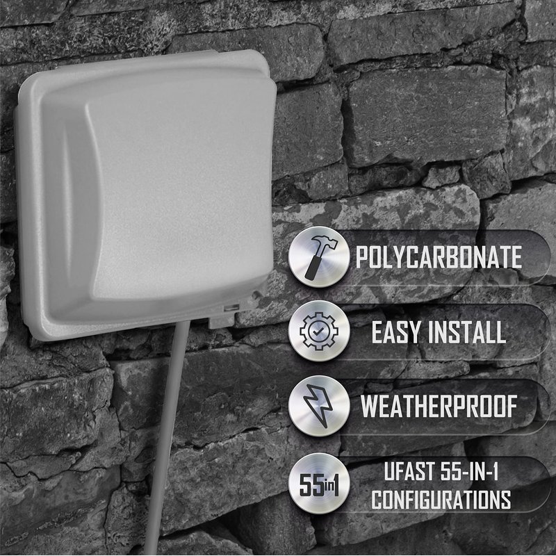 - 55 CUSTOM CONFIGURATIONS: Our weatherproof outlet cover uses Universal Fit Adapter system Technology for 55-in-1 custom device configurations. You can mount and protect duplex, round, switch, or GFCI.