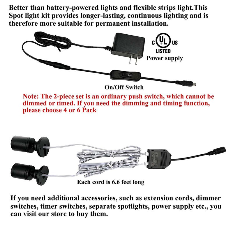 - 【Comfortable & Bright Illumination】Each display lights has 1.5 Watt,100 lumens and 6.6ft length cord.Soft White 3000K,with a Color Rendering Index of 85RA, our spotlights provide high-color accuracy and natural, non-flickering lighting, ensuring your eyes stay comfortable while enhancing your space.