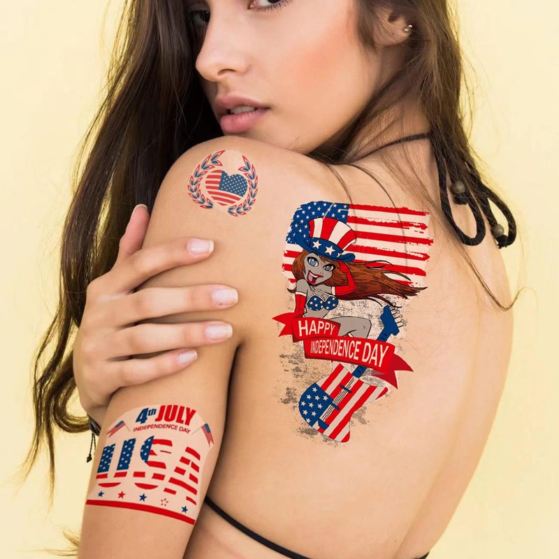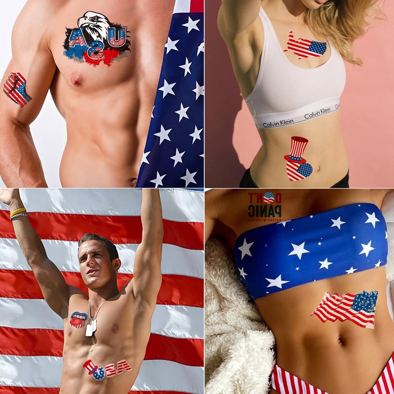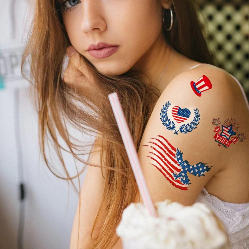 - 【Colorful Independence Day Fake Tattoos】These realistic tattoo kits are perfect for independence day labor day tattoos, shoulders, ankles, face,wrists, chest, back, feet, hands, and anywhere you like,express yourself with these patriotic tattoos!
