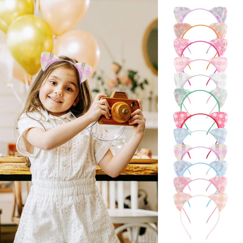 - 12 Cute and colorful headbands with cat ear can be decorated with shining Jewelry or other pretty decoration, use your imagination