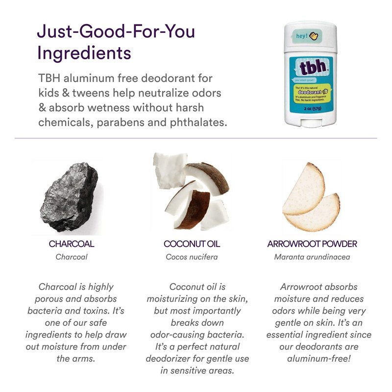 - Kids and teens bodies are changing daily, and an effective, safe natural deodorant is a must! From the makers of Fairy Tales hair products, TBH aluminum free deodorant for kids & tweens help neutralize odors & absorb wetness without harsh chemicals, parabens and phthalates. TBH Kids Deodorant is perfect for both boys & girls!