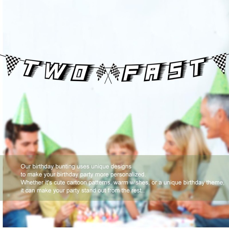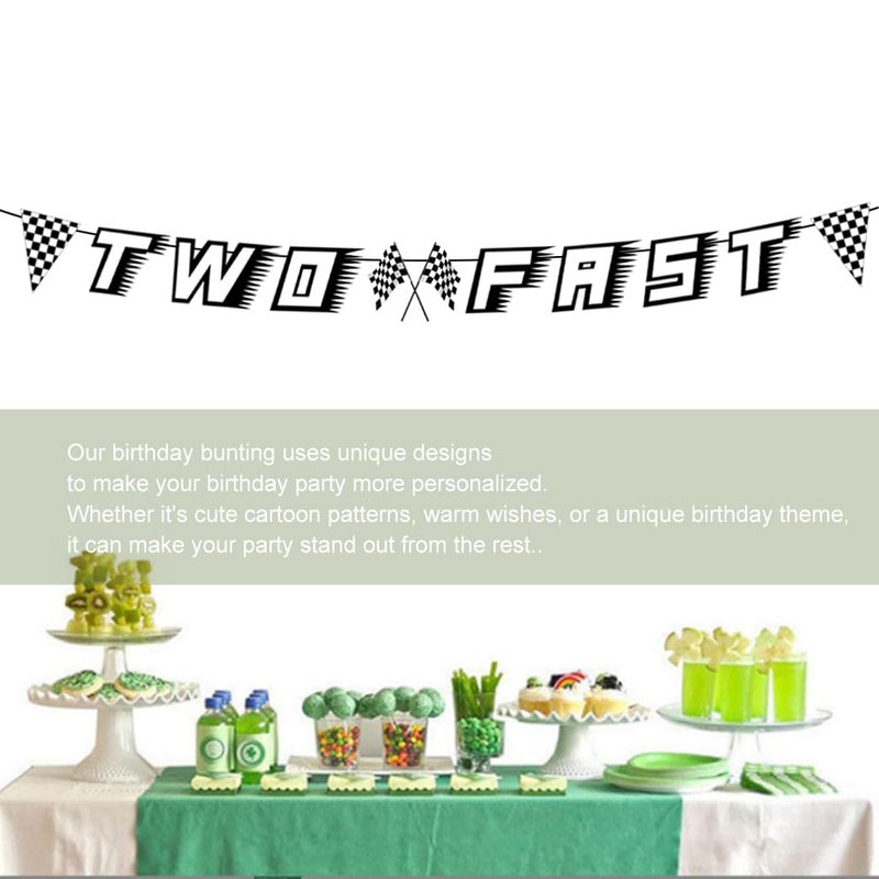 TC.ES Two Fast Happy Birthday Banner, Second Birthday Decorations Boy Race Car Themed Party Decorations
