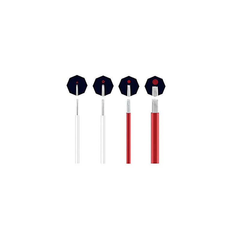 TcJ-Chen Semi-Permanent Makeup Round Microblade Needles Manual Fog Needle Eyebrow Tattoo Needle 4 Different Types R3 R5 R7 R21 Pack of 100