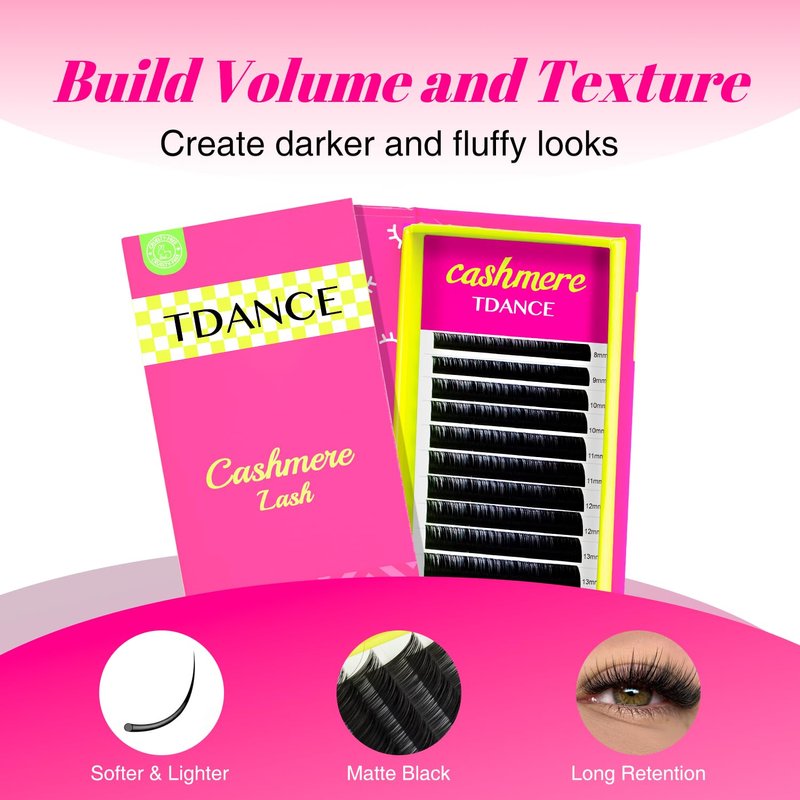 - 【Super soft cashmere lash extention】Our cashmere lashes are made from upgraded cashmere fibers. It's more soft and light weight. They fan like butter and help you create the most luxurious fluffy sets and create thin bases. You can use the lash extensions for classic, hybrid, volume and mega volume sets.