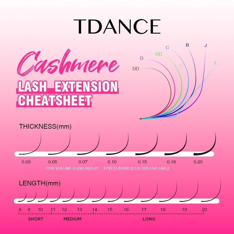 TDANCE Cashmere Lash Extensions Super Matte Black Classic Lash Extensions 0.05mm Thickness CC Curl 14-19mm Volume Eyelash Extensions for Professional Salon Use(0.05-CC,14-19mm)