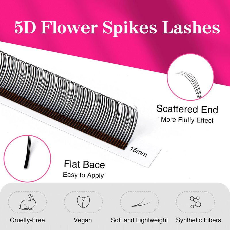 - đăDevelop diverse eyelash stylesăThis 5D flower lash design can achieve a spike effect, allowing you to combine various grafted eyelashes to present an array of rich styles for your clients to select from.