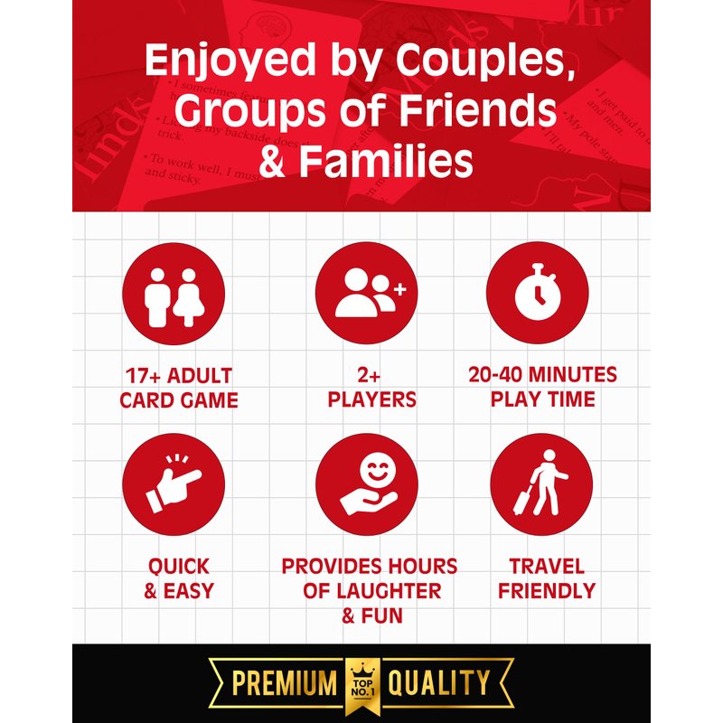 - PARTY GAME: Play with friends and see how highly suggestive clues will lead to the most innocent of answers, only to find out how much dirt is in your head.