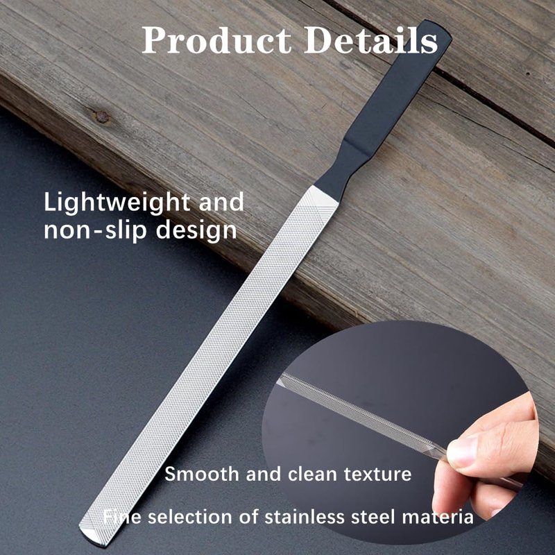 Material: Made of high quality stainless steel, safe, fine workmanship, solid structure, wear resistance and durability. Size: You will get 2 pieces of stainless steel nail file with the length of 13cm/5.1in and 18cm/7in. Design: This nail file has four textured grooves on its surface, and two lengths of nail file can meet your different needs. Black anti-slip handle makes you more comfortable to hold, feels good, is easy to control, and provides you with a satisfactory experience. Portable size: Nail file suit is small and light, easy to carry around. Just slip it into your pocket when you travel, and it can also be used as a nail file for dogs when you go home. It is an ideal choice for family life and outdoor travel. Widely used: This stainless steel nail file is sharper than ordinary nail file, and is suitable for a variety of use scenarios, especially for rough nails, toenails, onychomycosis and dog nails, and is also suitable for families, beauty salons and nail shops, suitable for both men and women (not recommended for polishing fine nails).
