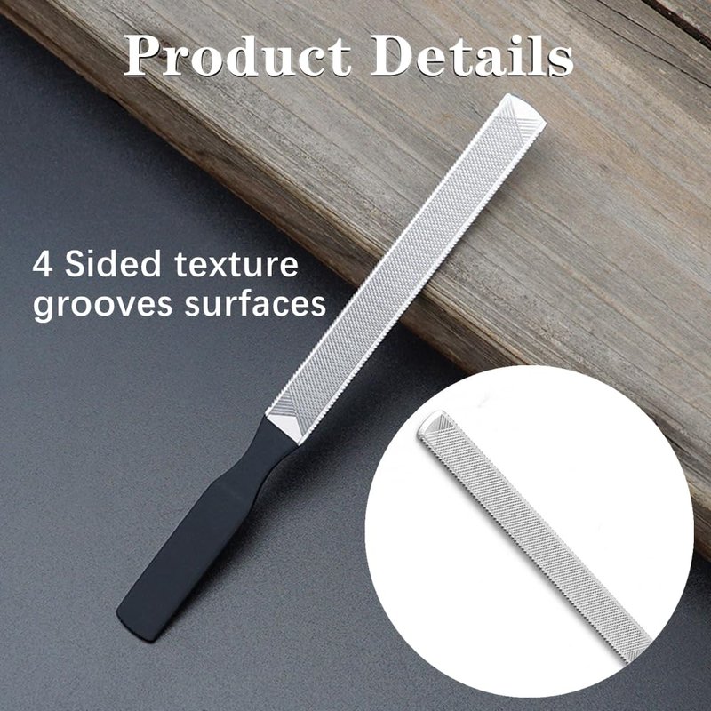- Design: This nail file has four textured grooves on its surface, and two lengths of nail file can meet your different needs. Black anti-slip handle makes you more comfortable to hold, feels good, is easy to control, and provides you with a satisfactory experience.