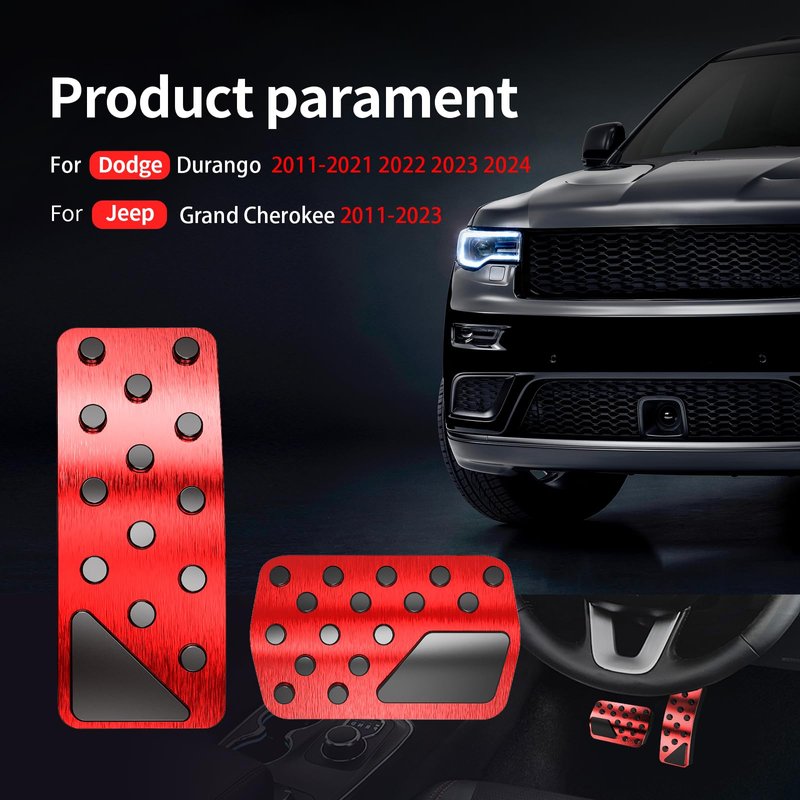 TDOFYH Aluminum Alloy Pedal Cover for Jeep Grand Cherokee Dodge Durango 2011-2024 No Drilling Aluminum Brake and Accelerator Pedal Covers 2PCS(Red)