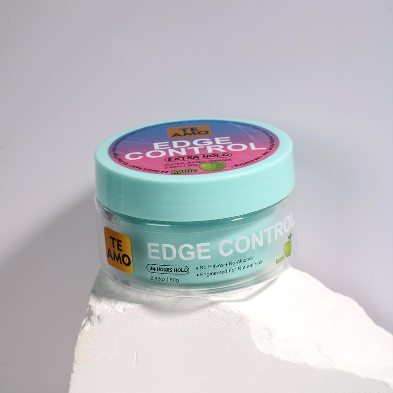 Can’t get your edges to stay in place? Te Amo Edge Control makes perfect hair day every day. Made with Castor Oil, Jojoba oil, Magnesium Chloride. Vitamin E without harsh ingredients, Te Amo Edge Control strengthens and protects edges while keeping hair moisturized, soft & manageable. It conditions and smooths out frizz and flyaway for shiny, sleek styles with a long-lasting, flake-free hold. Perfect for all hair textures. Delivers long-lasting hold with maximum control, versatility, and shine for all hair textures Designed to slick and hold down edges without reversion for sleek styling Moisturizes and repairs dry & damaged hair Helps strengthen edges and protect the hairline Contains hair growth-promoting sweet basil leaf extract Available in four different subtle fruity scents: Pineapple, Green Apple. A little goes a long way Directions: Take dime size on your index finger and rub the edge control between your index finger and thumb to smooth, then apply to edges. You may use an edge control styling brush (an old toothbrush works too!) Using too much of this product will cause a white residue, so less is more. You may also reactivate by wetting an edge control brush with water and applying the water to those areas where the edge control was applied previously.