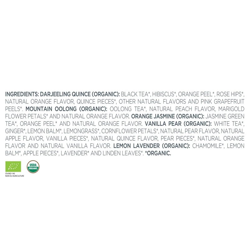 - DIVERSE, SUBTLE FLAVORS from only the finest whole tea leaves in the world, blended with aromatic fruits, flowers and herbs