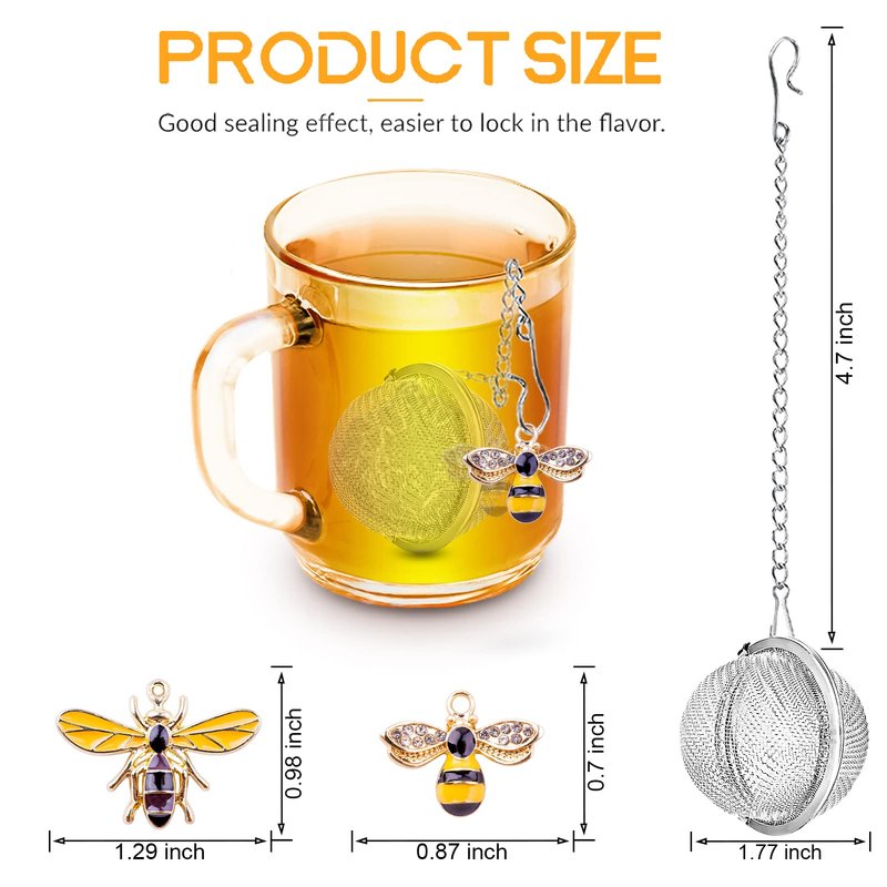- ♨【Cute Honey Bee Charm Pedants】: as you can see in the pictures, the charm infuser is designed with charm pedants in the shapes of 2 cute honey bee which could not only provide a pleasant visual enjoyment, but also allow the tea ball to hang steadily from your teapot or pot handle
