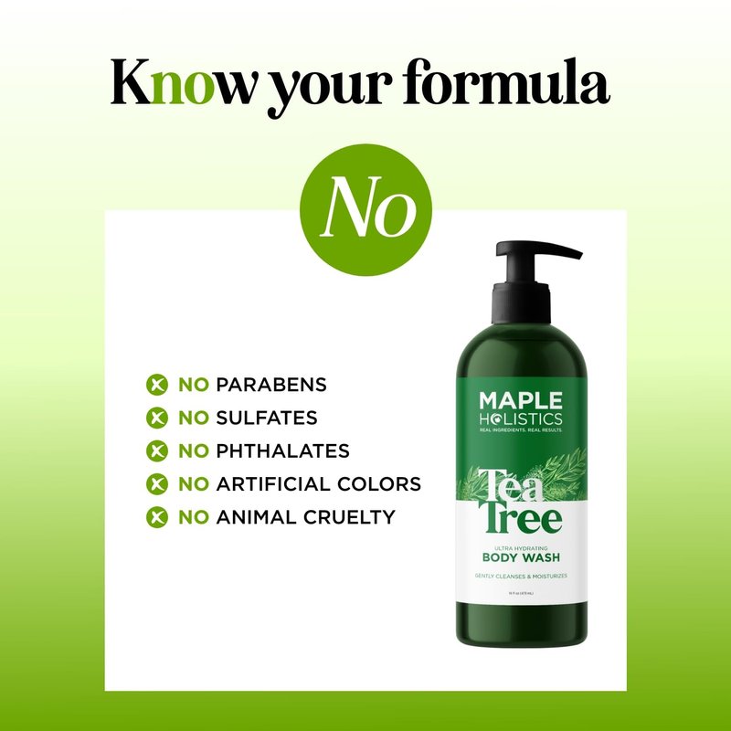 - Maple Holistics Quality - Real ingredients for real results is what we believe in which is why our tea tree body wash features nourishing natural oils to cleanse and moisturize your skin head to toe
