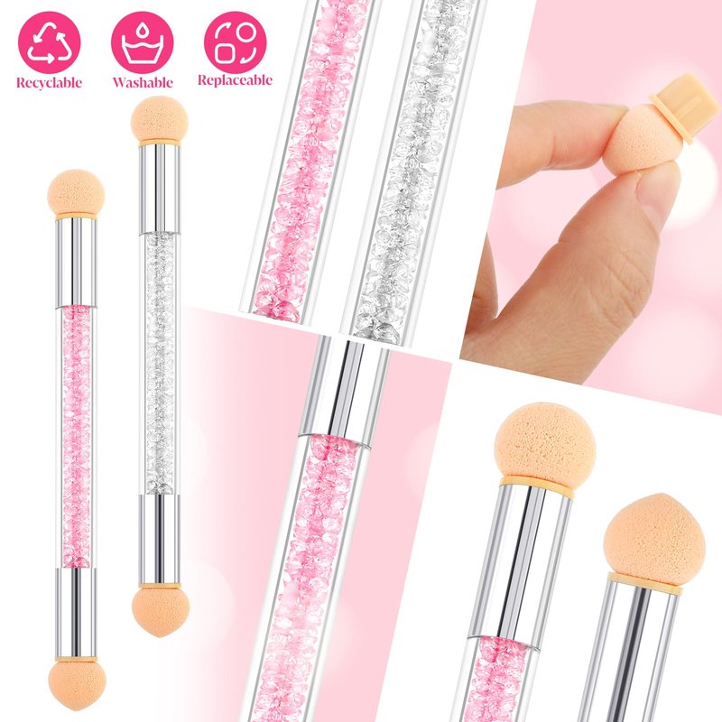 - [Excellent Material, Quality Guaranteed] Teaaha ombre brush for gel nails is made of high-quality sponge material and strong and durable acrylic rhinestone handle, which not only ensures good elasticity, but also makes your manicure tool more fashionable. The nail blending brush interior of the transparent tube is dotted with shiny colorful rhinestones, which not only increases the beauty, but also makes it easy for you to observe the cleanliness of the ombre sponge for nails at any time.