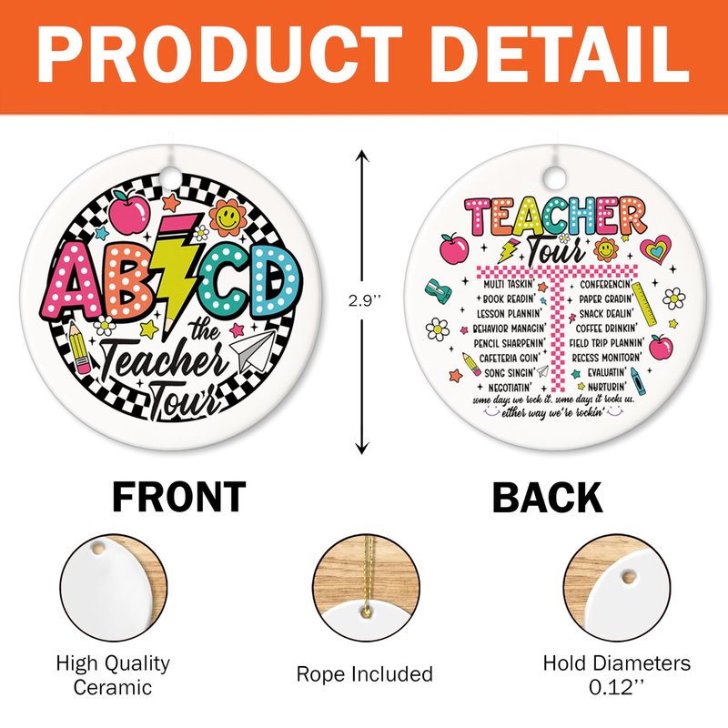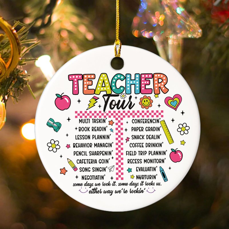 Teacher Tour Ornament Appreciation Gifts - Teacher Christmas Ornaments 2024 - Teacher Gifts for Christmas - Best Teacher Gifts - Teacher Appreciation Gifts for Women - Ceramic Double - Side 2.9''(H47)