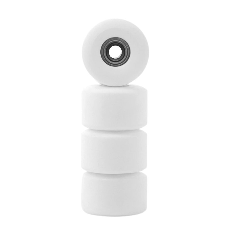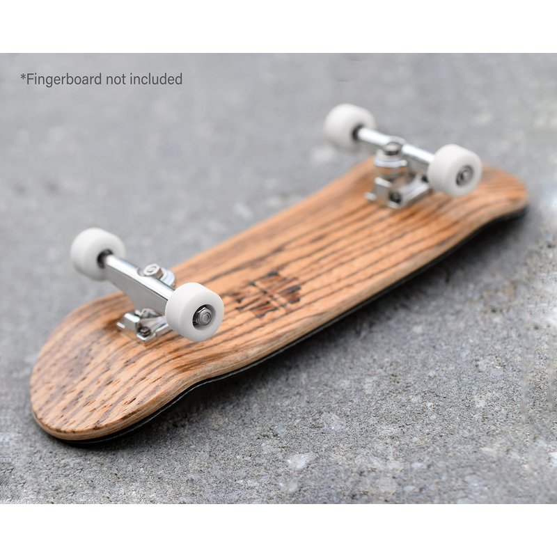 Set of four Apex Series, New Street Style Fingerboard Wheels in "White Snow" Colorway. The New Street Style 61D wheels are our softest wheels yet, and are equivalent to 101A hardness. The feel of these wheels are very similar to real skateboard wheels. Measuring 7.7mm in diameter and 4.9mm wide, these wheels are great for easy riding and doing tricks on all kinds of surfaces. These wheels are designed and made in the USA using a premium quality, custom Teak blended urethane. Each wheel is casted and cut in New York. Colors are handmixed and may vary slightly between sets. Many fingerboarders love the squeak sound that urethane wheels make as you powerslide across a surface or do a sharp turn.