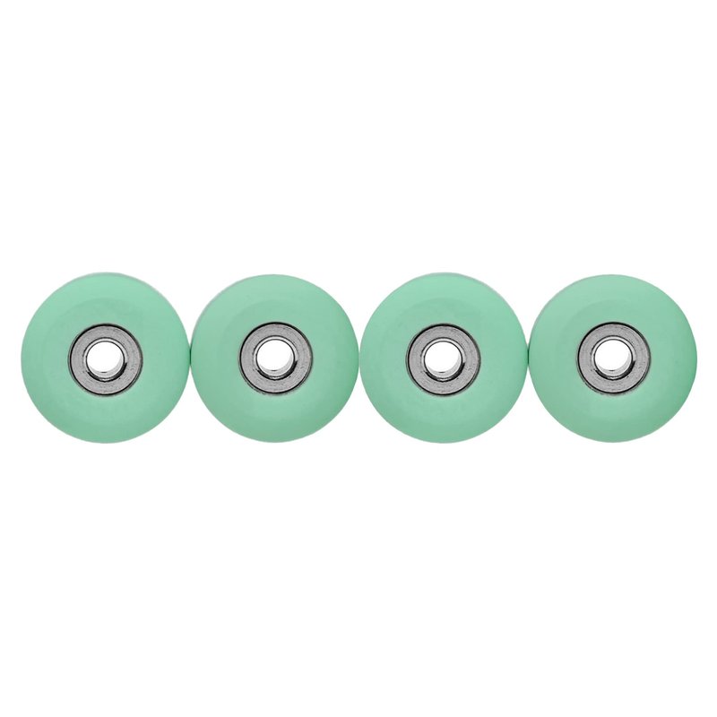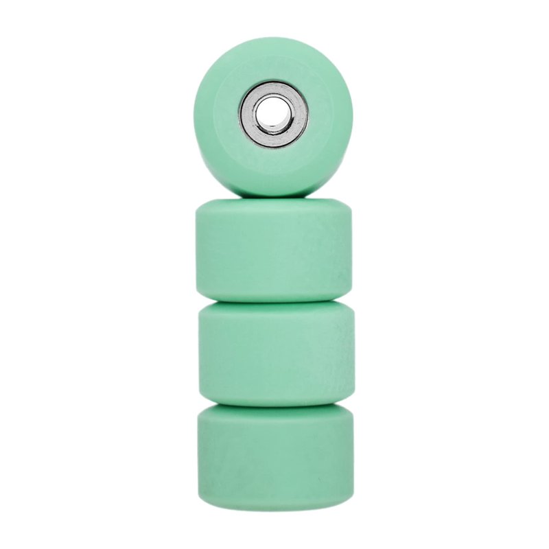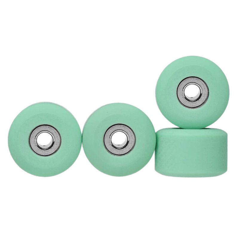 We've taken all the feedback from the first version and worked to make it even better. Apex wheels now include a bearing pocket - a complete custom bearing lock that prevents the bearing from coming out except while using a bearing press. Plus, we've further tuned our custom bearings to provide even more spin, and with the ability to fully tighten the locknut down, these wheels spin forever. Set of four Apex Series New Street Style Fingerboard Wheels in "Mint". Depending on the lighting, mint can appear more green or blue. Each Teak Tuning Apex Series wheelset is made from high quality urethane. New Street Style wheels hit the sweet spot with 71D durometer. They are not too hard and they are not too soft. Measuring 8mm in diameter and 5mm wide, these wheels are ideal for easy riding and tricks on all types of surfaces. These custom wheels are made in the USA from high quality urethane. Many fingerboard players love the screeching sound that urethane wheels make as you slide across a surface or make a sharp turn. Designed and manufactured in the United States. Perfect for riders of all skill levels. Includes a teak tuning sticker. Choking hazard: small parts. Not suitable for children under 14 years of age. Teak Tuning products are designed and manufactured for teens and adults alike. Products contain small parts and are not safe to put in the mouth due to materials and choking hazards. Keep all Teak Tuning products out of the reach of children under 14 years of age.