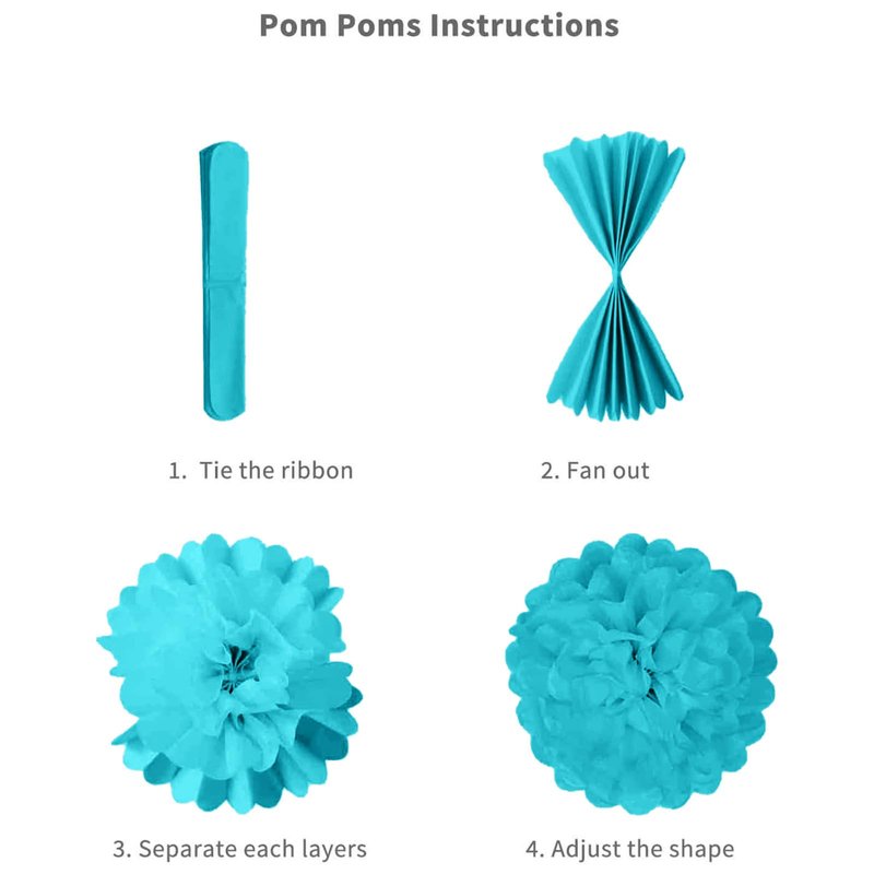 - π Teal And Gold Party Decorations - You will get 2pcs teal blue pom poms, 2pcs white pom poms, 2pcs gold pom poms, happy birthday banner, turquoise happy birthday buntting, 2pcs 18inch peacock blue star foil balloon, 12inch balloons (6pcs gold confetti latex balloons, 6pcs white party balloons, 6pcs metallic gold helium balloons, 10pcs teal blue party balloons), 1pc balloon ribbon.