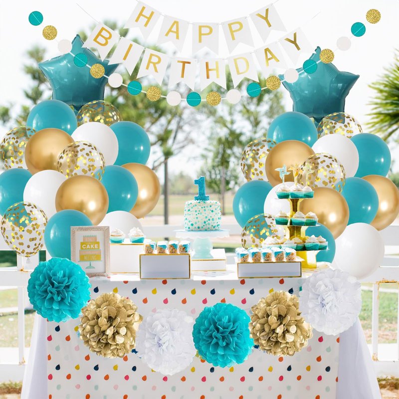 π Teal Gold Birthday Decorations for Women Men Boys Girls - Create Unforgettable Celebrations