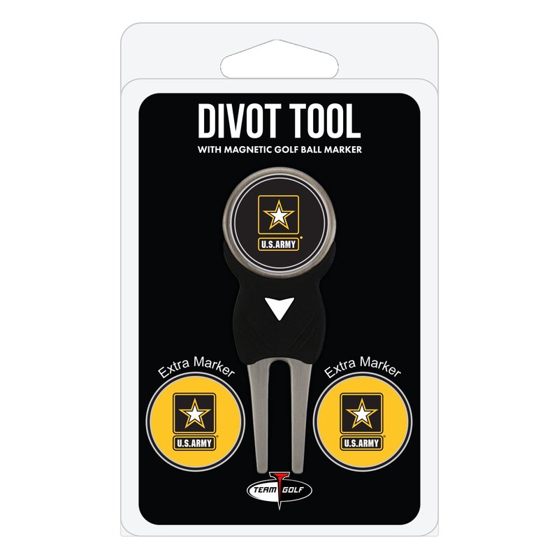 Team Golf Military Army Divot Tool Pack with 3 Golf Ball Markers Divot Tool with 3 Golf Ball Markers Pack, Markers are Removable Magnetic Double-Sided Enamel
