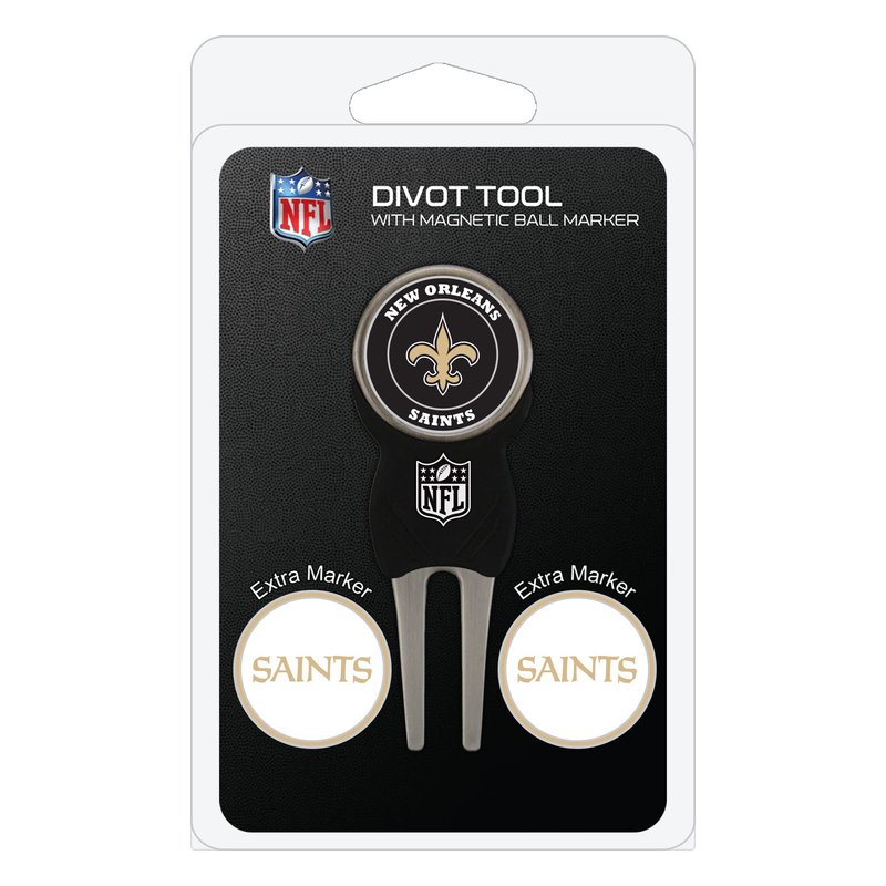 Team Golf NFL New Orleans Saints Divot Tool Pack With 3 Golf Ball Markers Divot Tool with 3 Golf Ball Markers Pack, Markers are Removable Magnetic Double-Sided Enamel