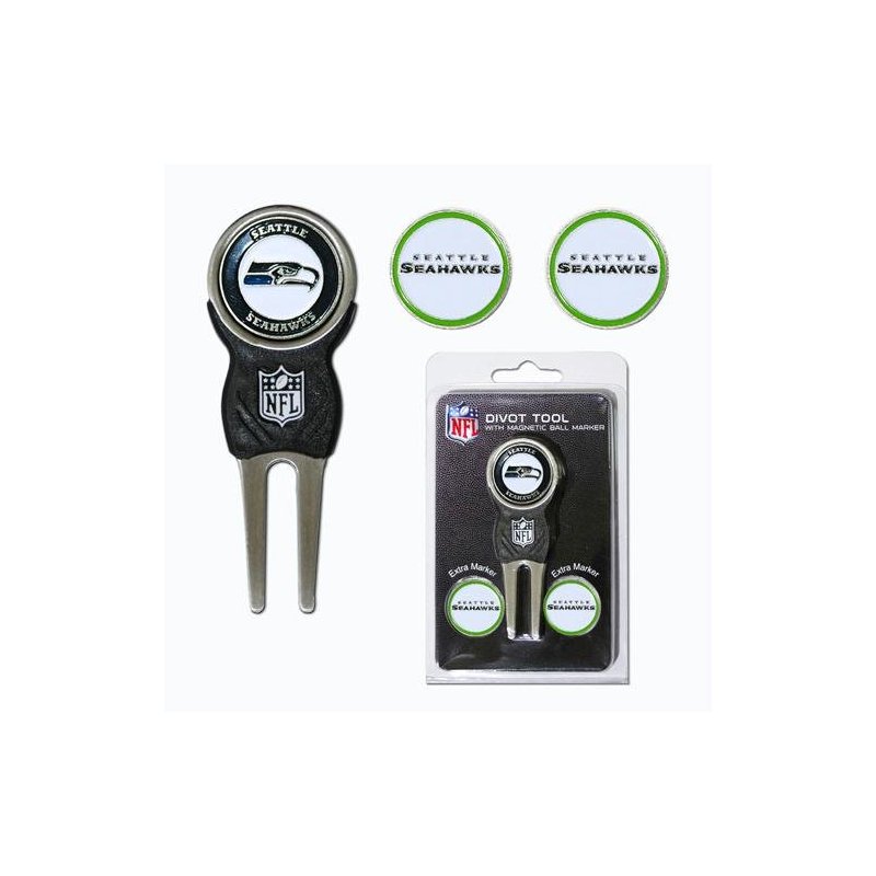 Team Golf NFL Seattle Seahawks Divot Tool Pack With 3 Golf Ball Markers Divot Tool with 3 Golf Ball Markers Pack, Markers are Removable Magnetic Double-Sided Enamel