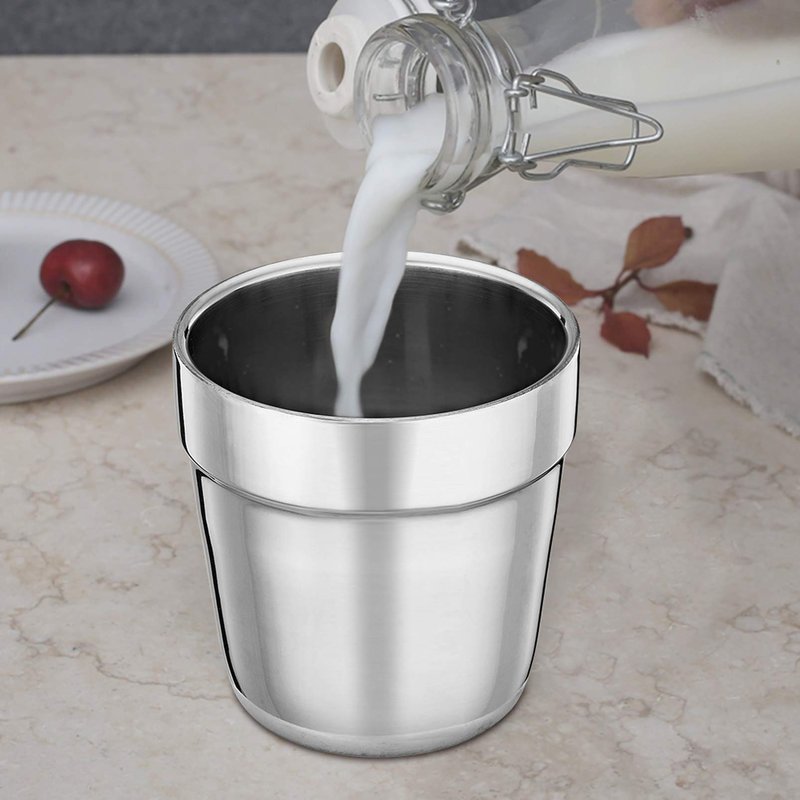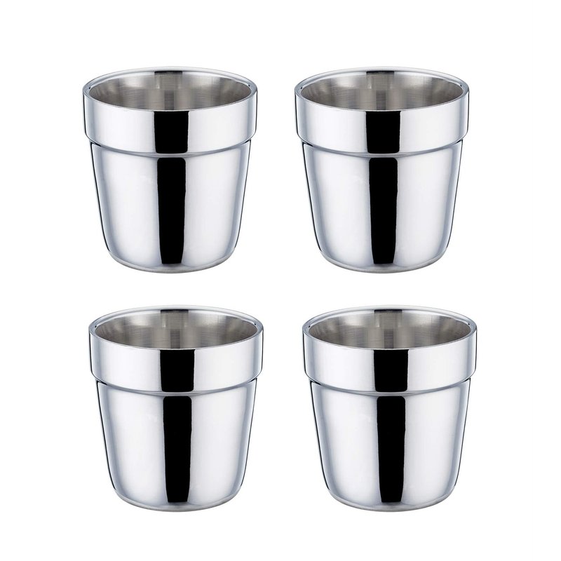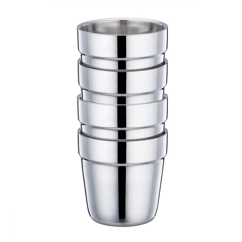 TeamFar Stainless Steel Coffee Cup Tea Cup Mug Set of 4, is made of high grade 18/8 stainless steel which is healthy for your daily use. The insulated double wall keeps the cup rim staying safe temp to touch with hot drinks. No more worry about your fingers burnt by hot drinks. Superb quality mirror finish surface make it easy to clean and take care. Stacking one by one to save your cupboard space and convenient to carry. Perfect for people who is looking for small coffee cups, espresso cups, tea cups.