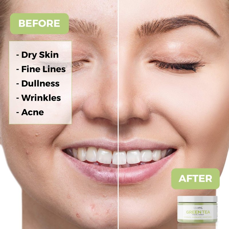 - Moisturize As You Exfoliate: Teami face exfoliating scrub is a gentle non-abrasive exfoliator that works without stripping your skin of its natural oils maintaining the natural hydration of your skin. Our matcha face scrub will remove makeup as well as dead skin cells, to bring your younger-lookin skin to the surface. Different from facial microdermabrasion products, our gentle, non-irritating herbal ingredients are designed with respect to oily, dry, combination, rough, bumpy or sensitive skin.