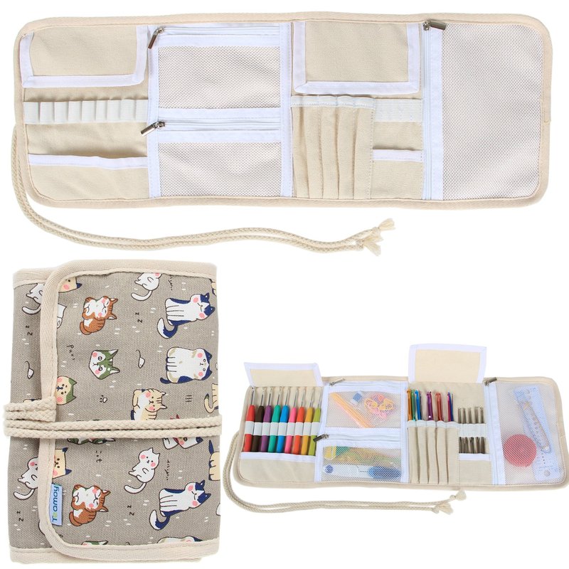 Teamoy Crochet Hook Case, Roll Bag Holder Organizer for Various Crochet Needles and Knitting Accessories, Cartoon Cats