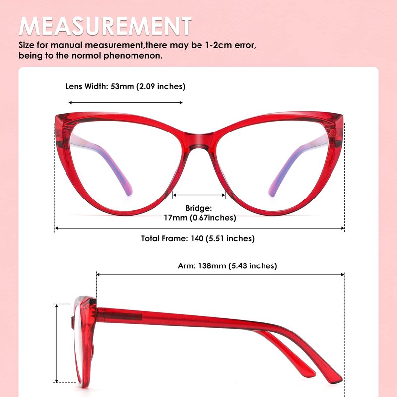 - ⭐【Fashion Cateye Design】The chic cat eye frames can match with all kinds of facial forms. The multiple colors can match with different outfits in a daily fashion.