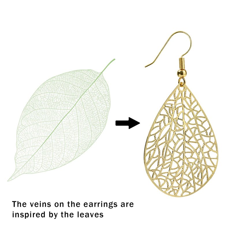 - [Design] Gold drop earrings adopt the shape of water drops, the internal filaments imitate the veins of leaves. They are exquisite and beautiful, it is the first choice for nature lovers.