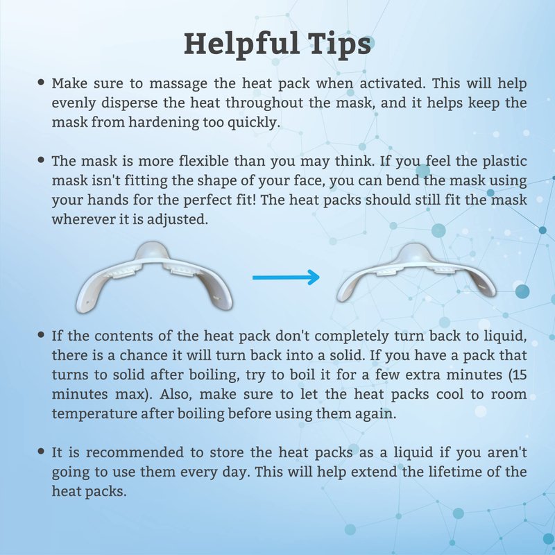 - NO MICROWAVE! Self-Heating, Durable, and Reusable – Activate by simply pressing the metal disc within the heat pack, no microwave needed! Heat packs are reusable up to 90 times by resetting them in boiling water for a few minutes. This process cleans the heat packs and ensures a hygienic treatment every use. The TearRestore warm compress turns your daily dry eye treatment into a home spa experience!