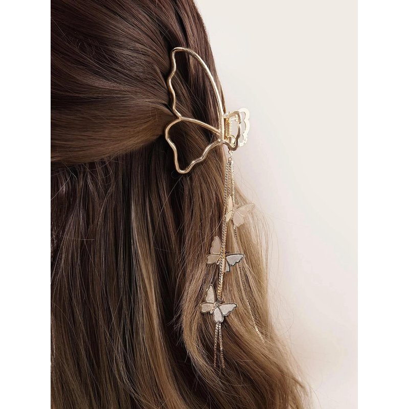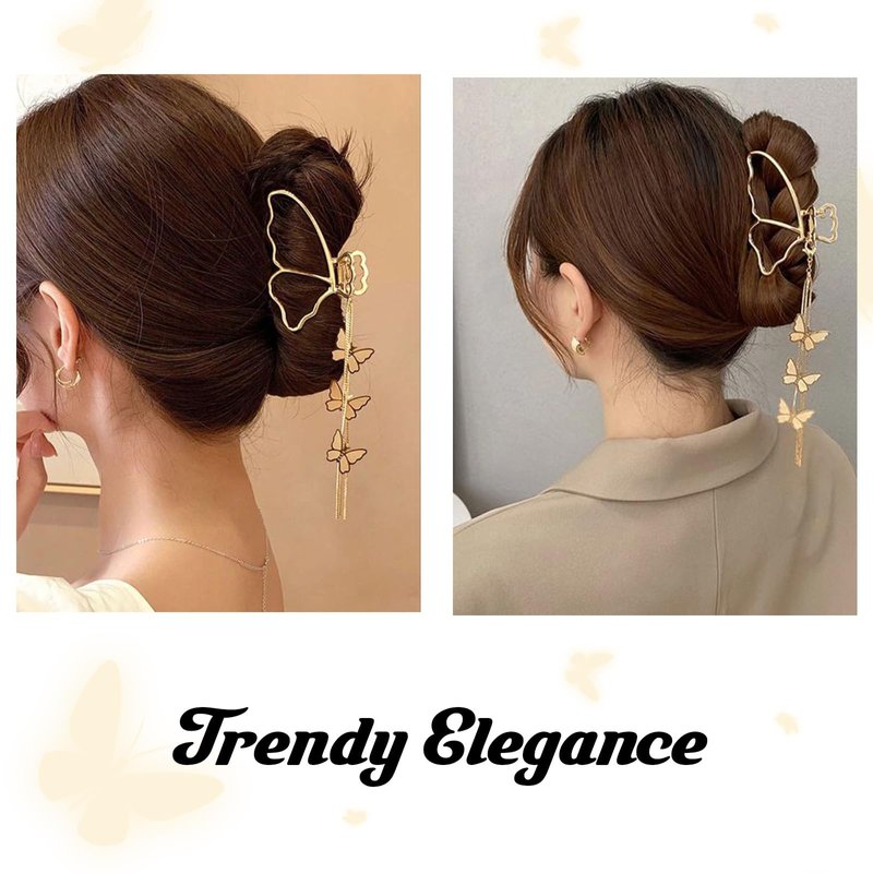 - The hair claws is designed with butterfly shape with elegant tassels, contributing to a charming and whimsical aesthetic. Beautiful look and practicality are in butterfly hair claw clips.