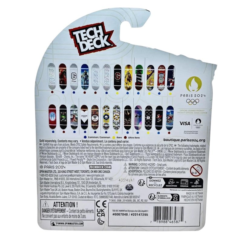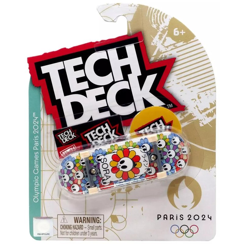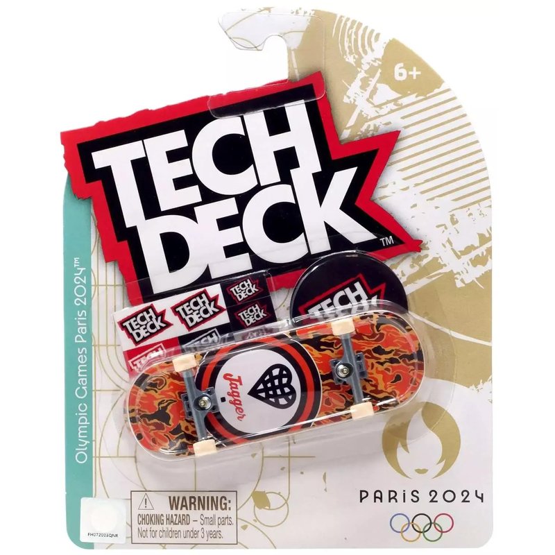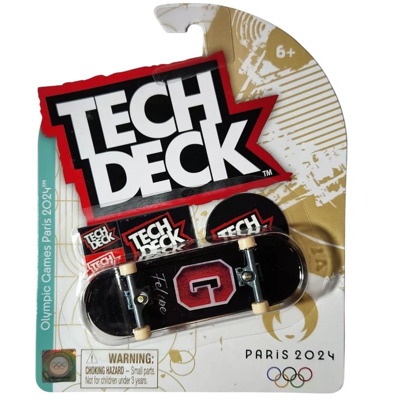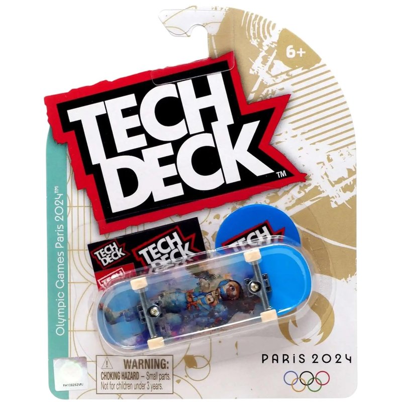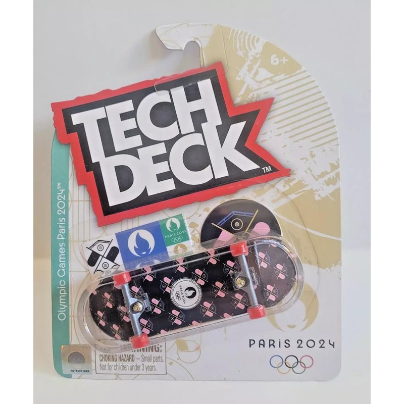 - Tech Deck Olympic Games Paris 2024 Skateboard single fingerboard pack includes 1 complete mini skateboard deck and stickers. This collectible fingerboard is approximately 96mm long and is suitable for ages 6 and up. You will receive random design product from Olympic Games Paris 2024 series collection of toys.