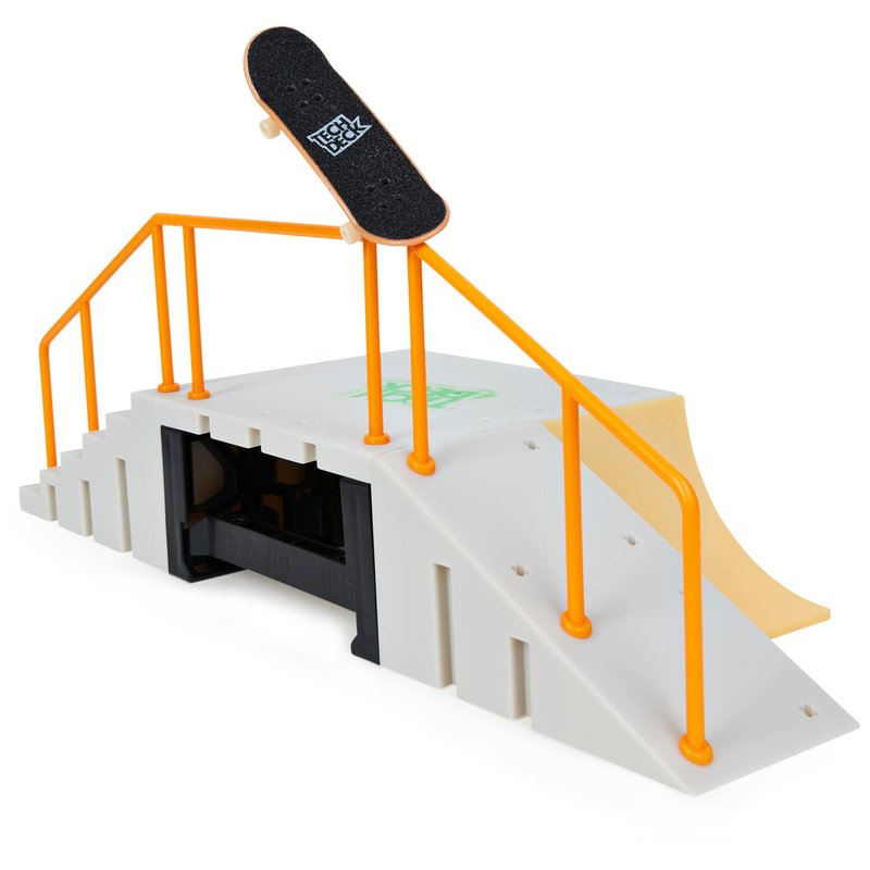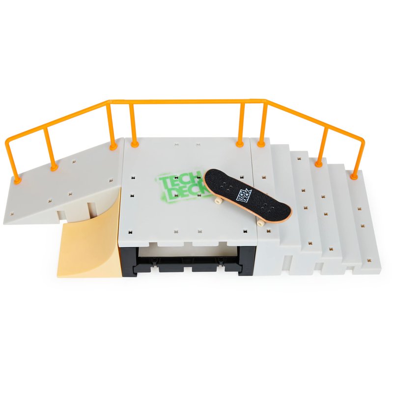 - Includes: 1 Tech Deck Fingerboard, 1 Staircase, 1 Ramp, 1 Roll-in Ramp, 4 Small Supports, 1 Tech Deck Square Panel, 1 Short Stair Rail, 1 Short Ramp Rail, 1 Short Mid Rail, 4 Scaffold Beams, 16 X-Connectors, 8 Foot Pegs, Instruction Sheet
