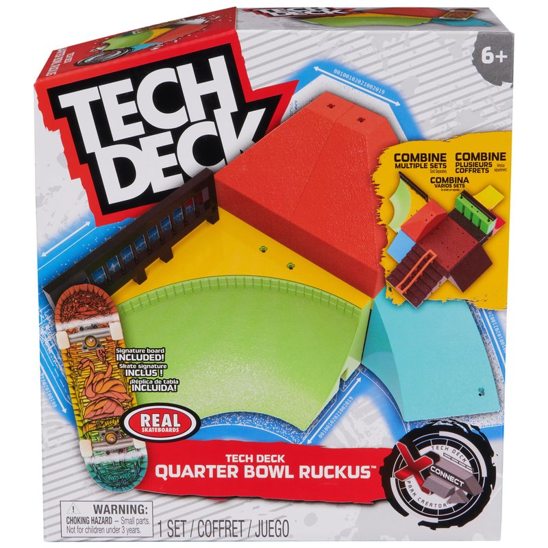 - CUSTOMIZABLE PARK: Design and build your custom mini skateboard park with the Tech Deck Quarter Bowl Ruckus X-Connect Park Creator skatepark ramp set. Set up different combinations with a triangle ramp, small pyramids, rail and roll-in ramps to learn and progress your tricks.