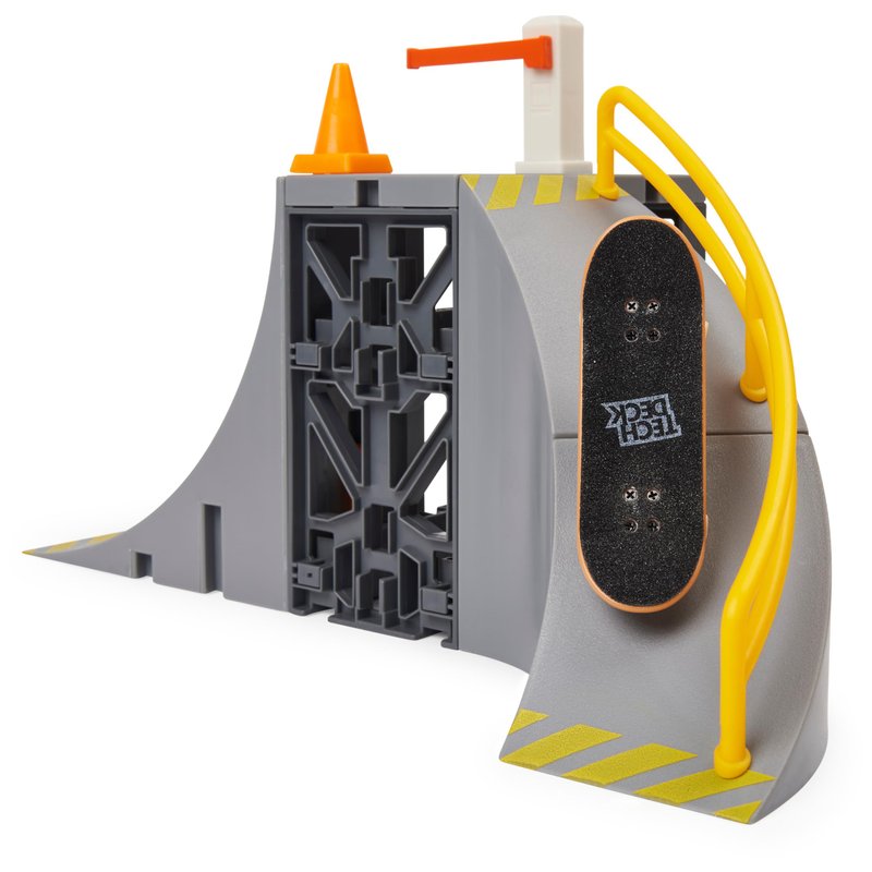 - Includes: 1 Tech Deck Fingerboard, 1 Large Roll-in Ramp, 1 Curved Bottom Ramp, 1 Curved Top Ramp, 3 Traffic Cones, 4 Scaffold Beams, 1 Parking Gate Post, 1 Parking Gate, 1 Rectangle Panel, 1 Curved Rail, 2 Large Supports, 5 Large X-Connectors, 10 X-Connectors, 12 Foot Pegs, Instruction Sheet