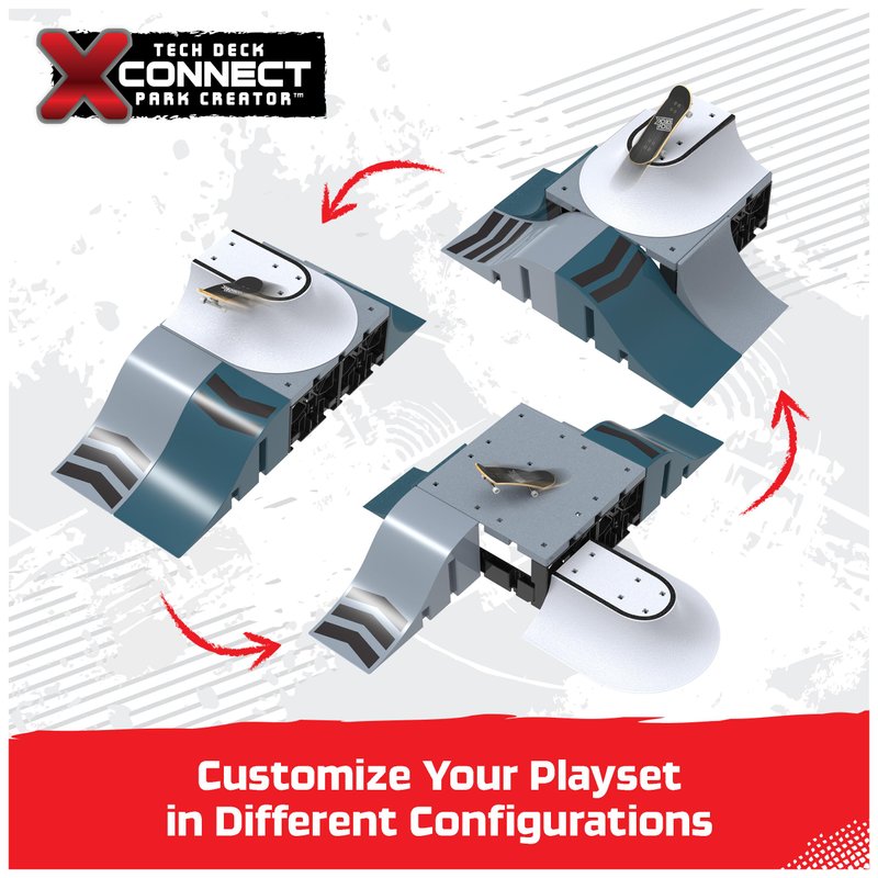- CUSTOMIZABLE PARK: Design and build your custom mini skateboard park with the Tech Deck Speedway Hop X-Connect Park Creator skateboard ramp set. Set up different combinations with three types of ramps to learn and progress your tricks.
