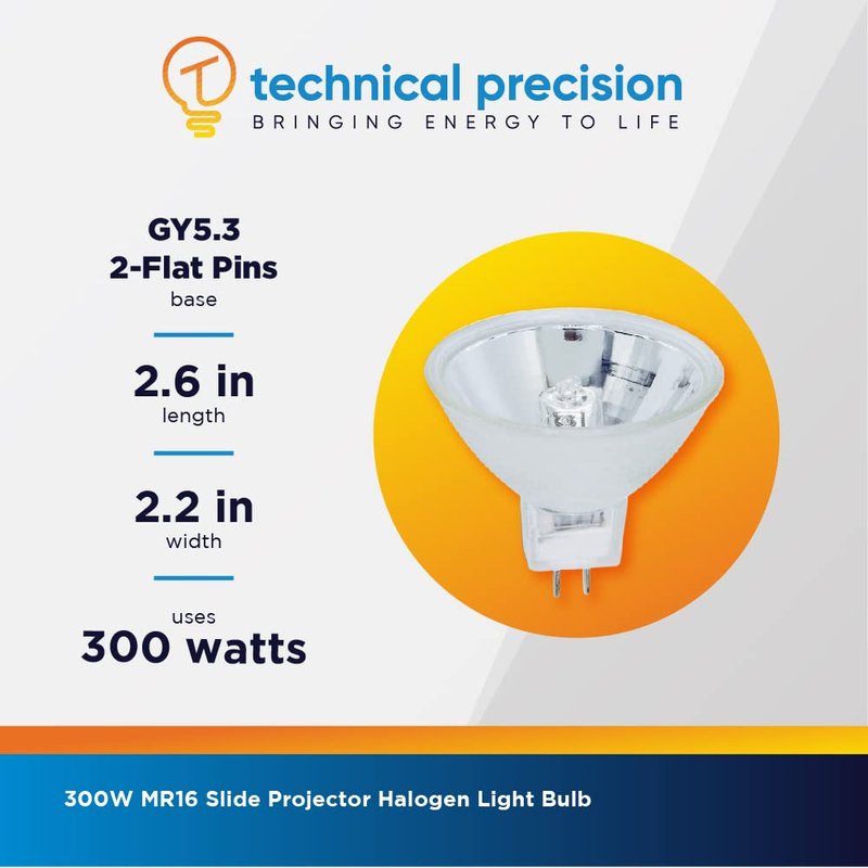 Technical Precision 300W 120V Projector Bulb Replacement for Eversmart Carousel 600h MR16 Halogen Lamp - GY5.3 2 Flat Pins - 3350K - 1 Pack