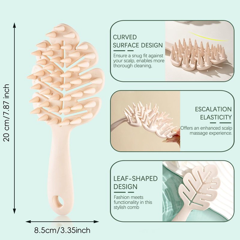 - Leaf-Shaped Design: The Hair Scalp Massager Shampoo Brush showcases an attractive leaf-shaped design, instantly catching the eye. Fashion meets functionality in this stylish comb that is sure to elevate your scalp care routine.