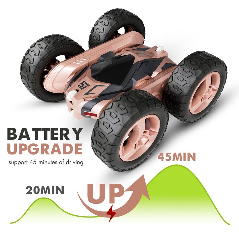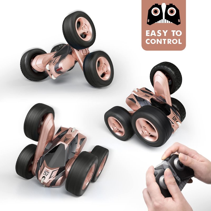 Tecnock Remote Control Car for Kids,360 ° Rotating Double Sided Flip RC Stunt Car,2.4Ghz 4WD Toy Car with Rechargeable Battery for 45 Min Play,Great Gifts for Boys and Girls(Pink)