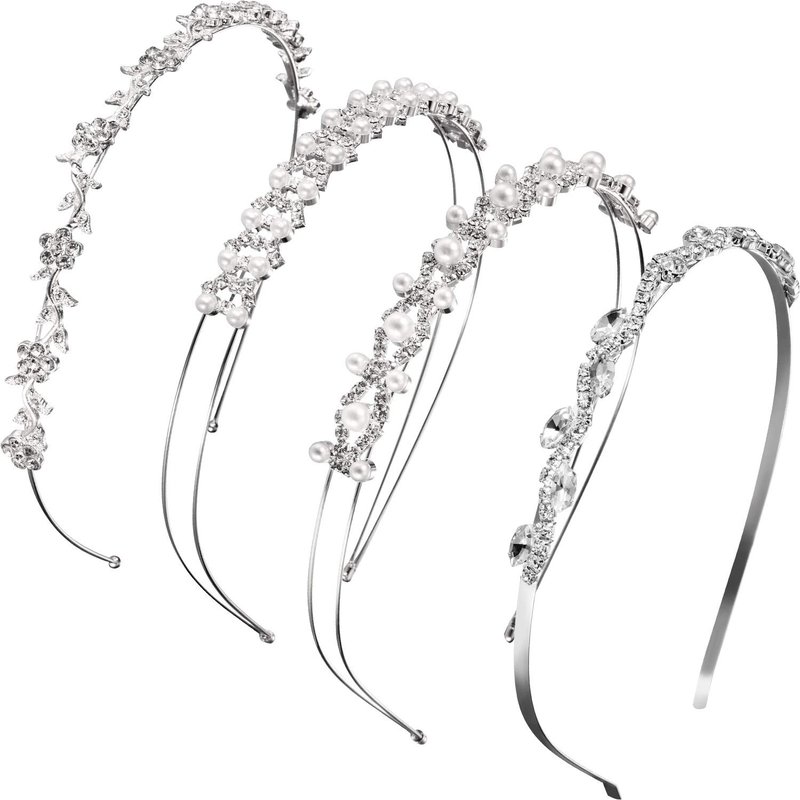 TecUnite 4 Pieces Rhinestones Wedding Headbands Crystal Flower Girl Leaves Crown Headband Tiara Women's Faux Pearl Rhinestones Headdress for Bride Bridesmaids Wedding Party (Style Set 1)
