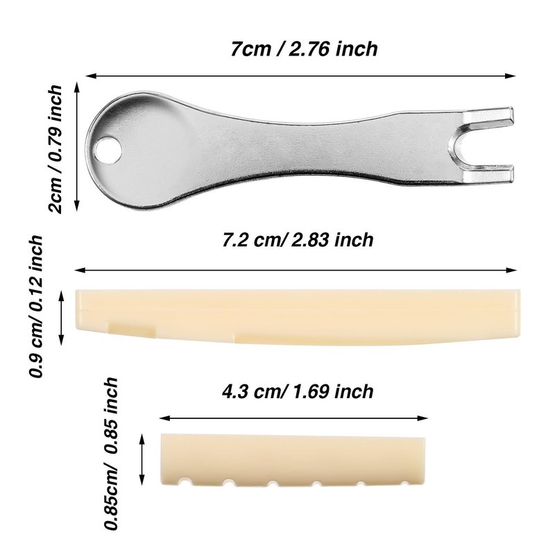 - Package Includes: 1 guitar bridge pin puller, 1 guitar saddle, 1 guitar nut, 6 ivory guitar bridge pins and 6 black guitar bridge pins