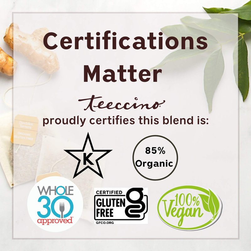 - 3X MORE HERBS - Teeccino’s 6g tea bag holds three times more herbs than standard tea bags which increases its benefits for maximum wellness in your cup. No artificial flavors, chemicals, MSG, or preservatives. Non-GMO, organic herbs.