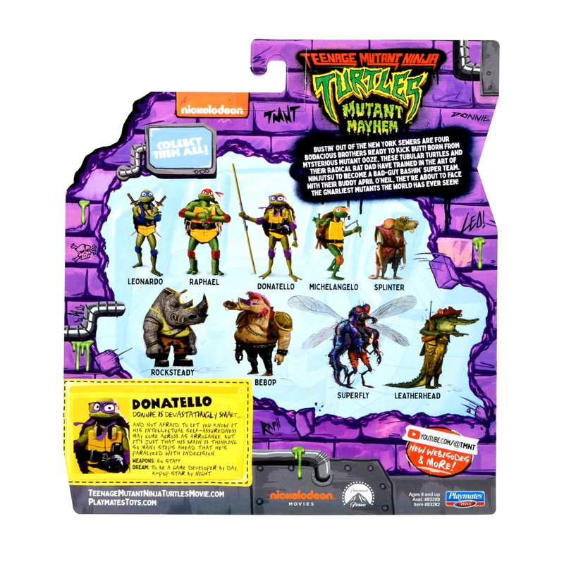 • MOVIE PACKAGING: Donnie comes in a highly decorated blister card package with bright, bold details that includes TMNT Mutant Mayhem movie branding.